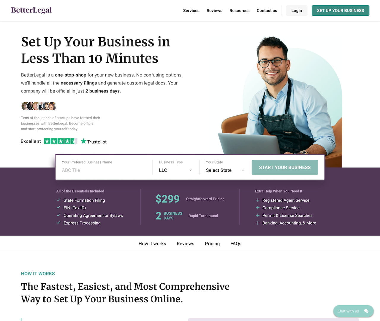 BetterLegal is a one-stop-shop for setting up a new business. They offer services to establish LLCs or Corporations within the State of your choice, handling all the necessary filings and generating custom legal documents in just a couple of days [1][3]. Their platform is designed to make the business formation process easier and less confusing for entrepreneurs.
