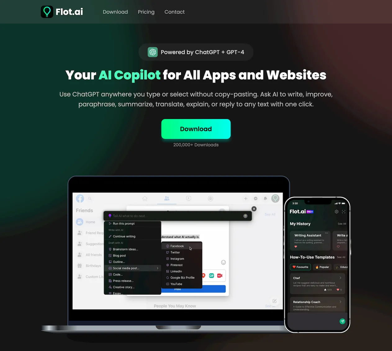 Flot.ai – Chatbot and AI assistant for macOS, Windows, iPhone, Android