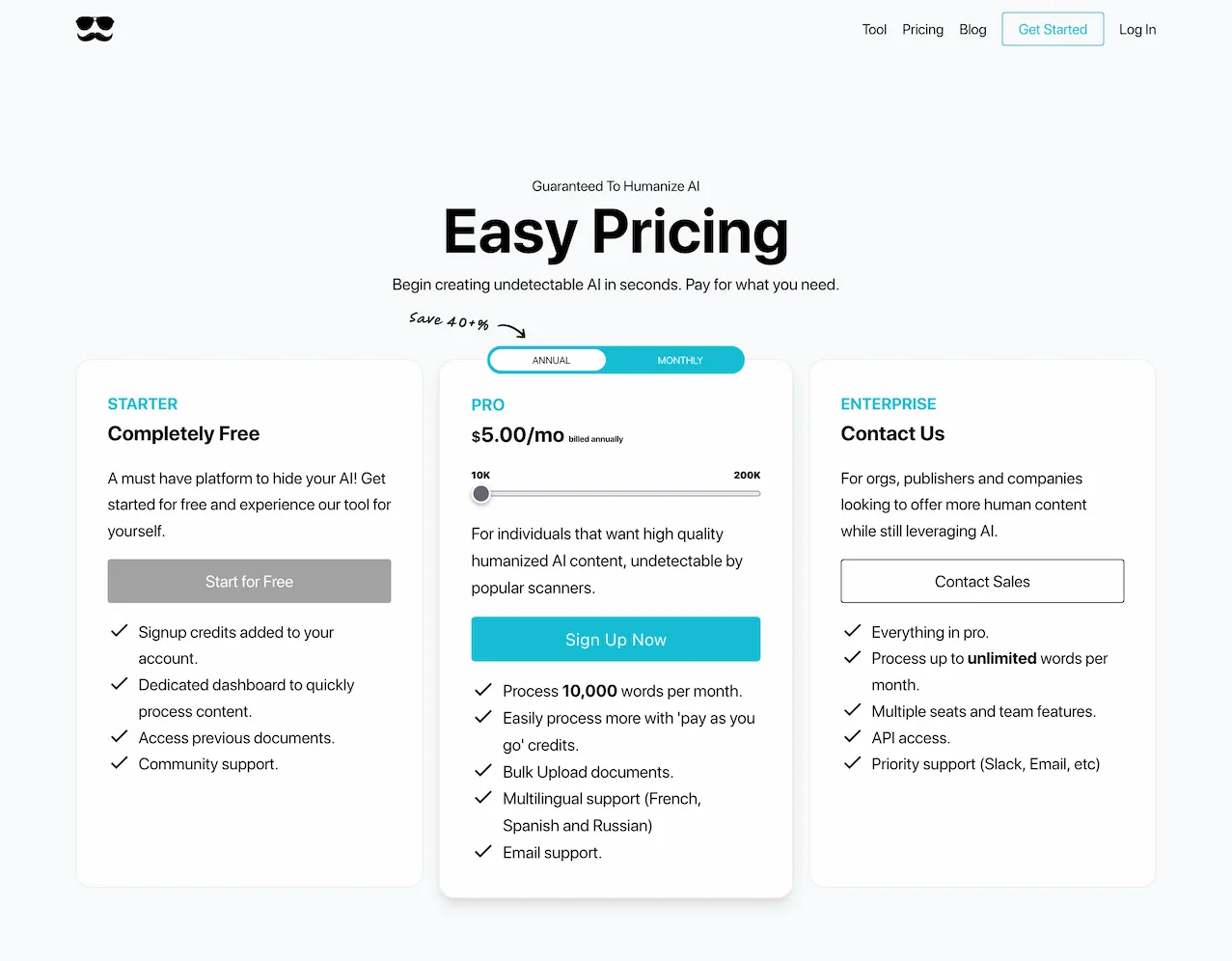 HideMy.AI is committed to providing ethical content creation that fosters meaningful and authentic interactions with audiences, aiming to build trust and establish stronger connections. The service caters to various needs, offering pricing plans that allow users to pay for what they require, with a free starter plan available. The platform is also affiliated with businesses, SEO professionals, and essay writers, offering a unique Software-as-a-Service (SaaS) product that transforms AI writing into human-like content.