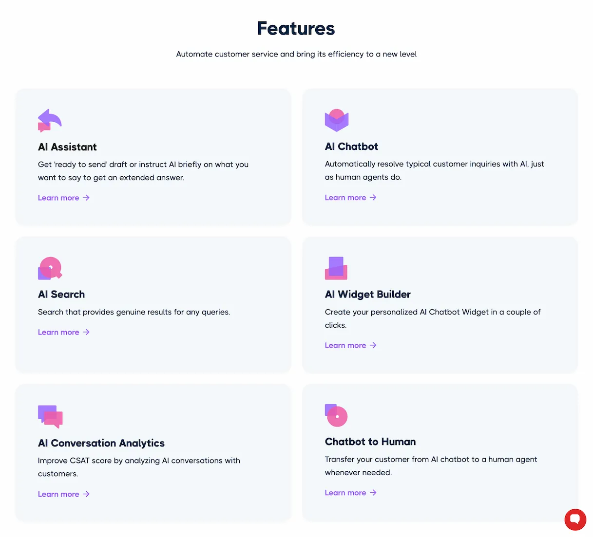 - AI Chatbot - Automatically resolve typical customer inquiries with AI, just as human agents do. Learn more
