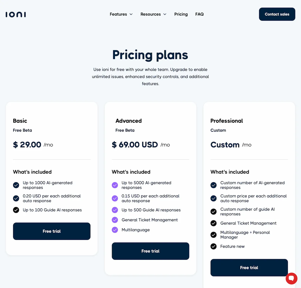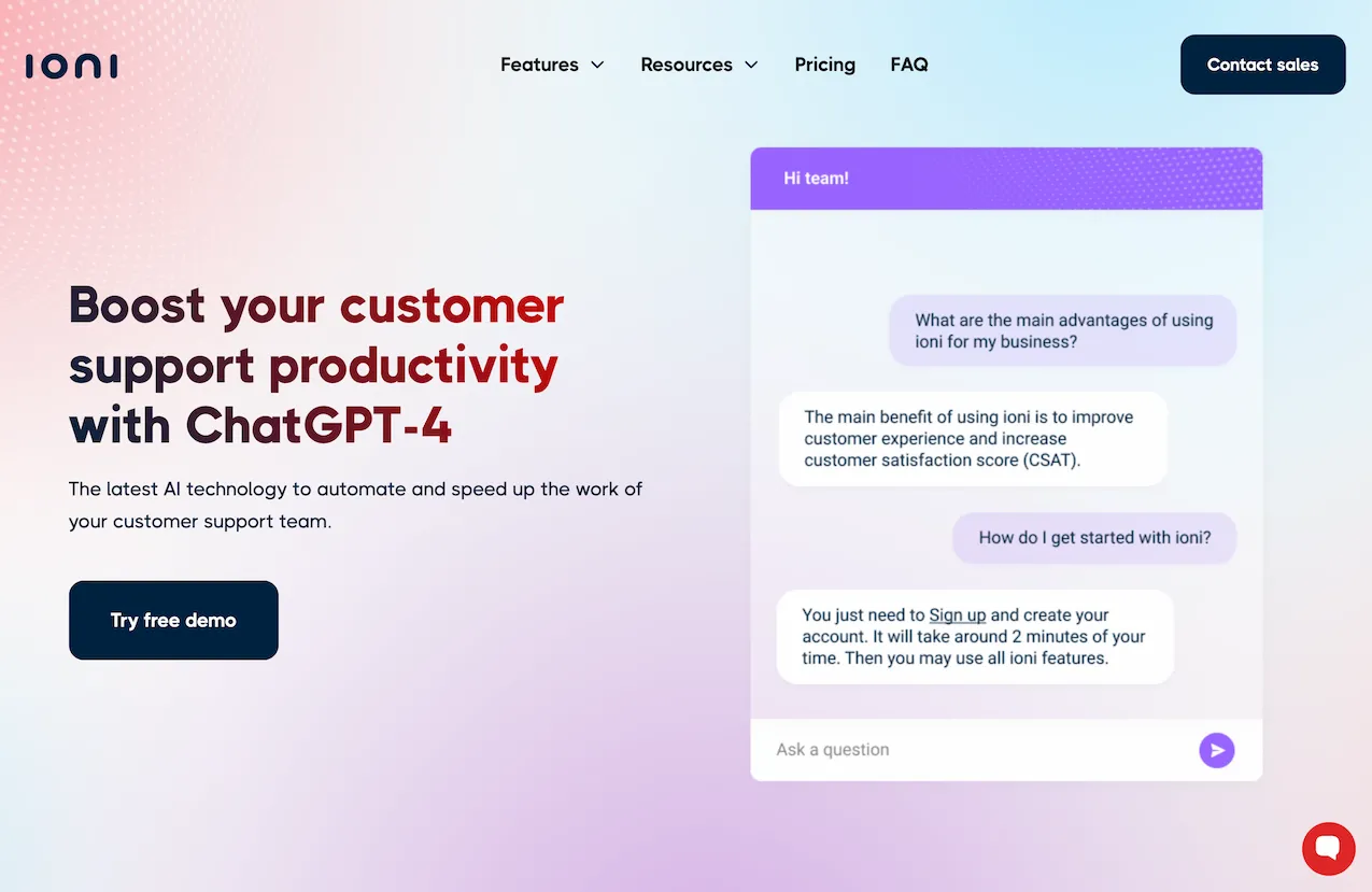 ioni.ai - the best tools of customer support with ChatGPT-4