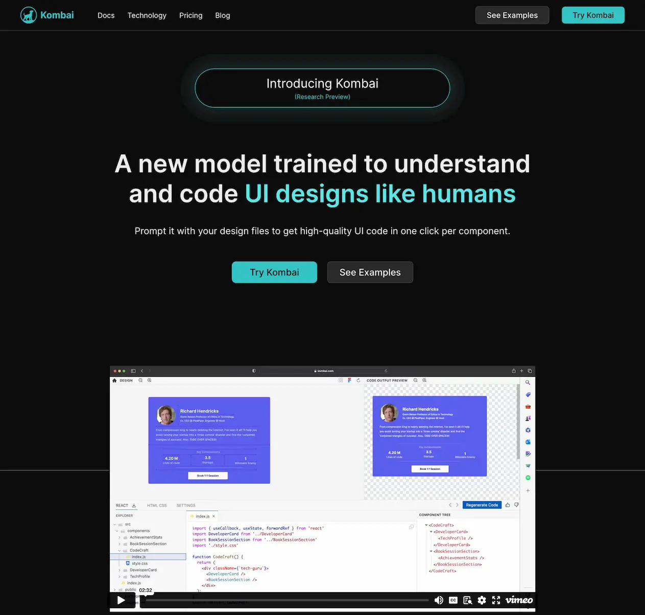 - AI-Powered Conversion: Leveraging a unique combination of deep learning and heuristic models, Kombai offers a revolutionary solution that translates UI designs into functional frontend code. The outcome? Code that mirrors human-like precision and quality.
