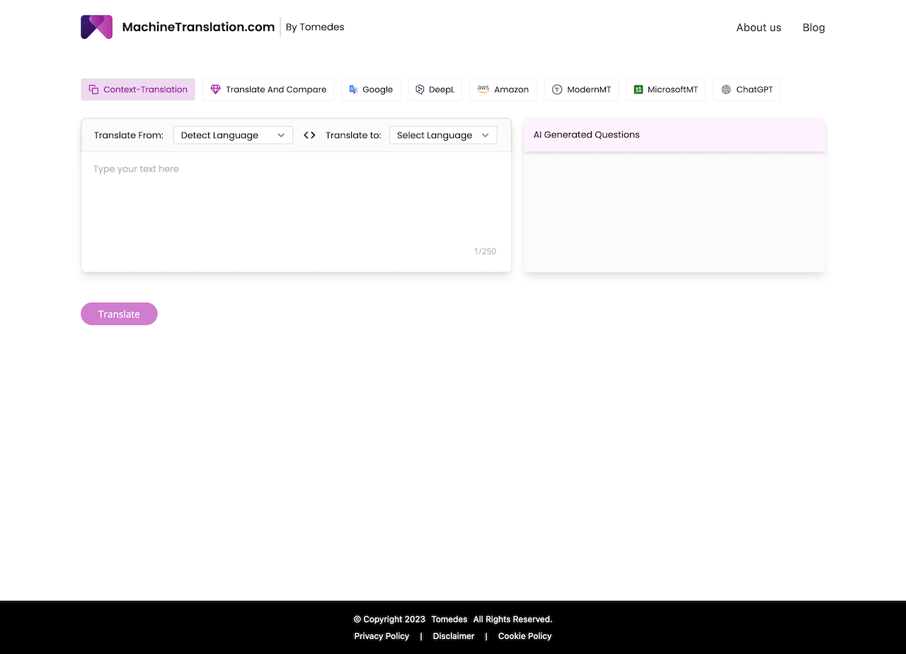 Machinetranslation.com is a website that offers fast and reliable machine translation post-editing (MTPE) services. They leverage machine translation technology to break down language barriers and provide clear and accurate communication for both personal and business interactions. The website provides an AI-powered online language translator tool that offers accurate and efficient machine translation for any language pair. It is also worth noting that Tomedes, a language service provider, has launched a trial machine translation output comparison tool on the Machinetranslation.com website.