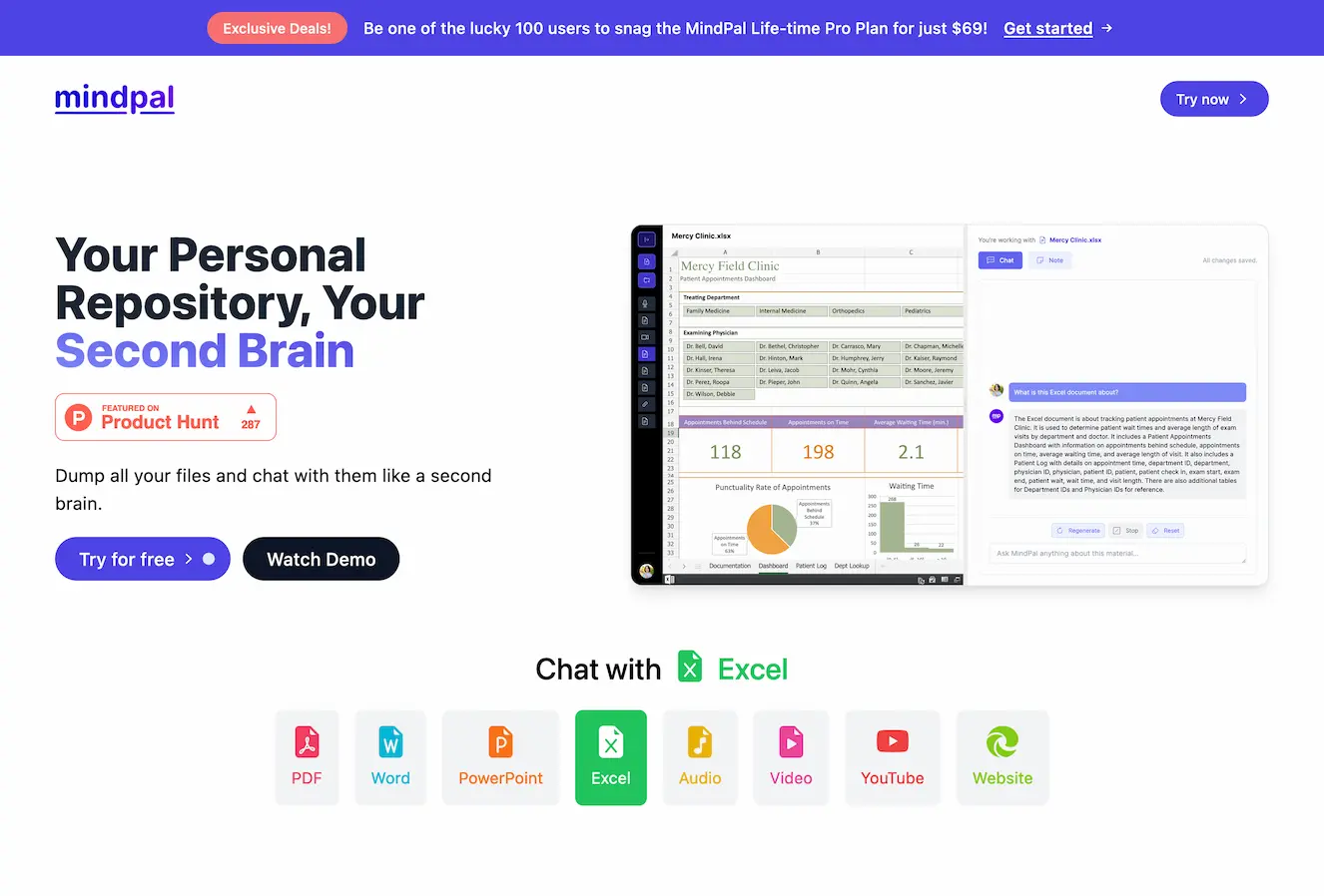 MindPal is an innovative platform that serves as a personal repository and a second brain for users. It offers the unique ability to transform various types of materials, such as PDFs, PowerPoint presentations, YouTube videos, and more, into AI-enhanced learning spaces[1][6]. This AI-powered tool aims to enhance the learning experience by providing personalized learning spaces that include auto-generated quizzes and interactive features. The platform's goal is to make learning more engaging and efficient.