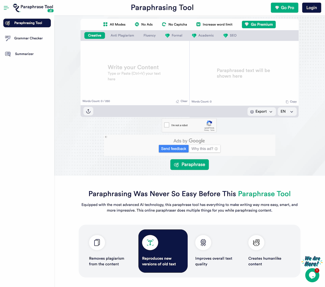 - Creative Mode: Produces multiple versions of text, ensuring context and meaning remain intact