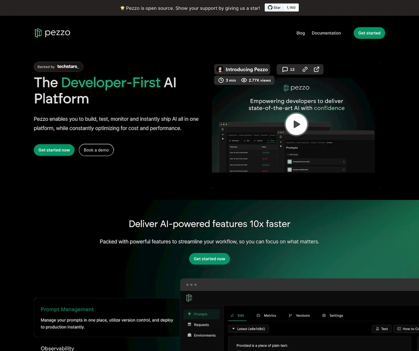• Open-Source and Cloud-Native:Pezzo is fully cloud-native and open-source, making it accessible for developers. It allows you to seamlessly observe and monitor your AI operations and troubleshoot any issues.