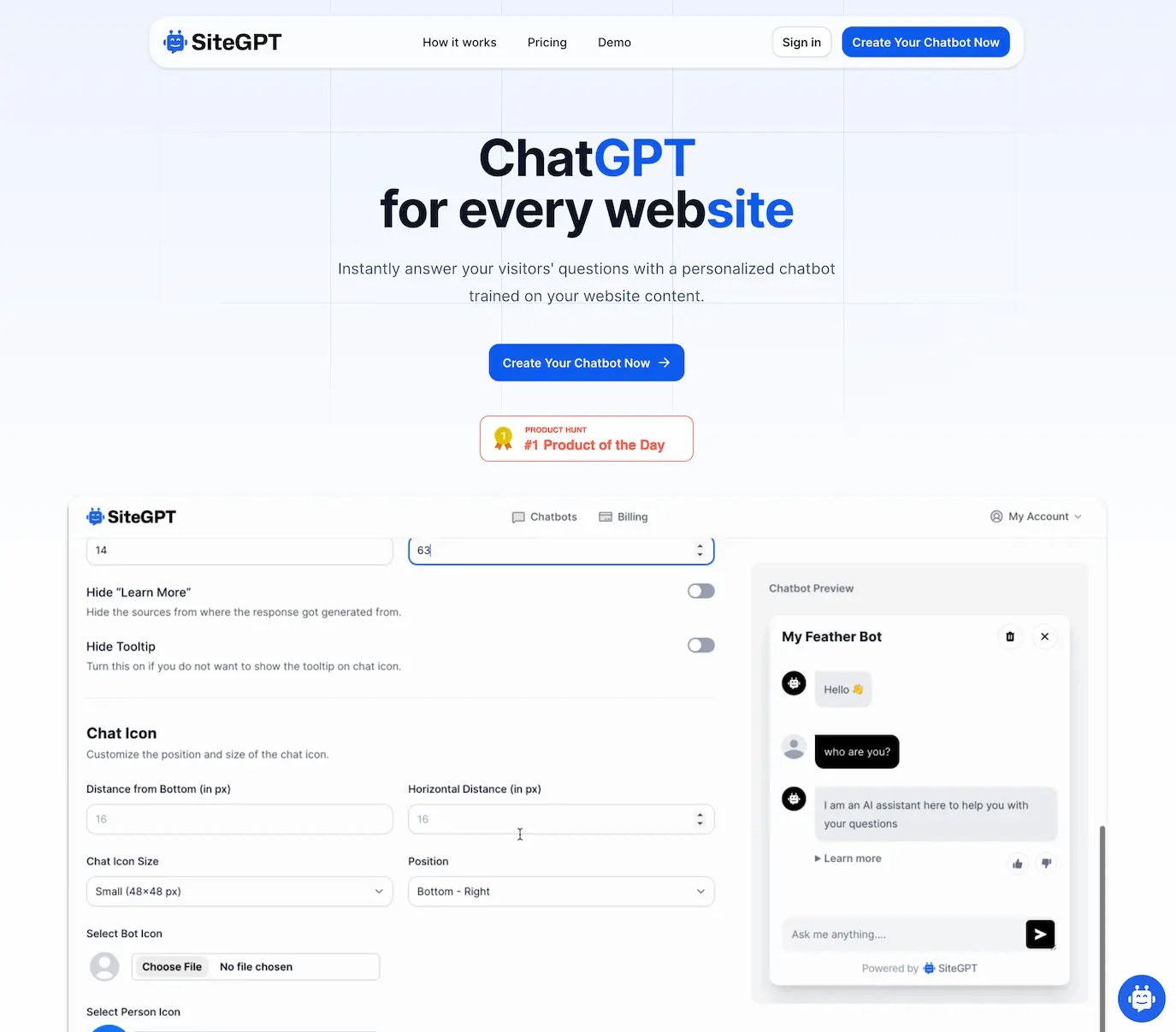 - Pricing: While there is no free plan available, the platform offers a demo version for users to explore its capabilities. Detailed pricing information can be found on the SiteGPT website.