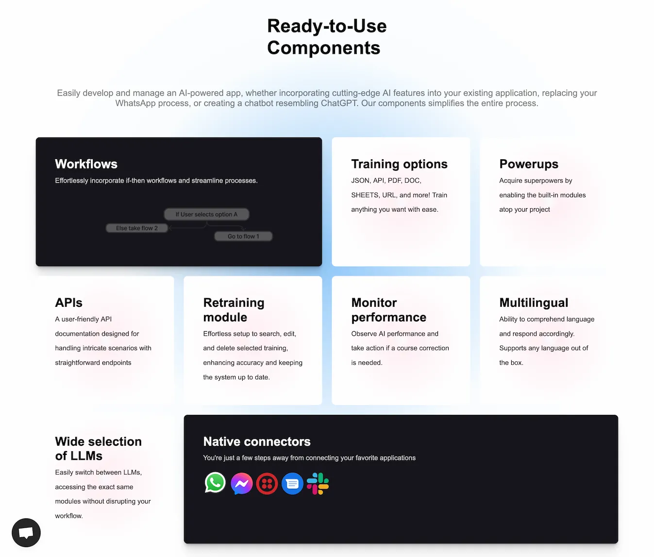 - AI-Powered Applications Superdash allows users to effortlessly develop and manage AI-powered applications. These applications can either incorporate cutting-edge AI features into existing apps or even replace traditional processes, such as the case of WhatsApp integration. [1]